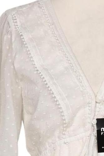 | Détails | Dentelles, volants, Broderie anglaise, Manches courtes, Encolure en V, Élastique/cordon de serrage, Patte de boutonnage avant, Uni |