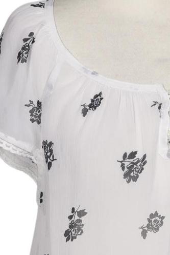 | Détails | Chiffon, Manches courtes, Col rond, Sans fermeture, Fleuri |