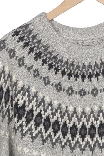 | Détails | Grosse maille, Manches longues, Col rond, Ethnique |