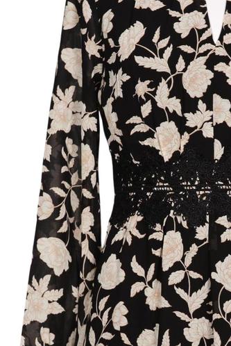 | Détails | Dentelles, Manches longues, Encolure en V, Fleuri |