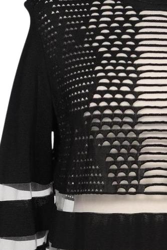 | Détails | Découpes, Grosse maille, Manches longues, Col rond, Rayures |