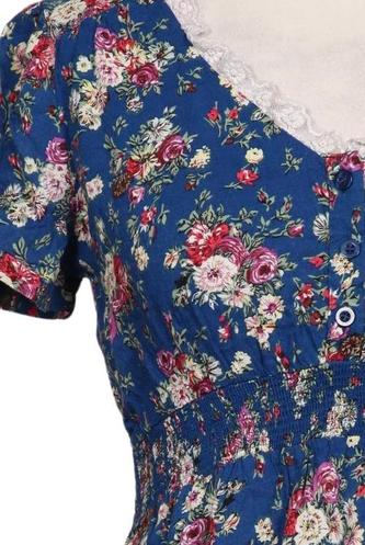 | Détails | volants, Manches courtes, Encolure en V, Élastique/cordon de serrage, Fleuri |