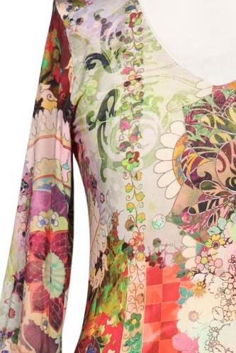 | Détails | Jersey, Manches trois-quarts, Encolure en V, Ethnique, Fleuri |