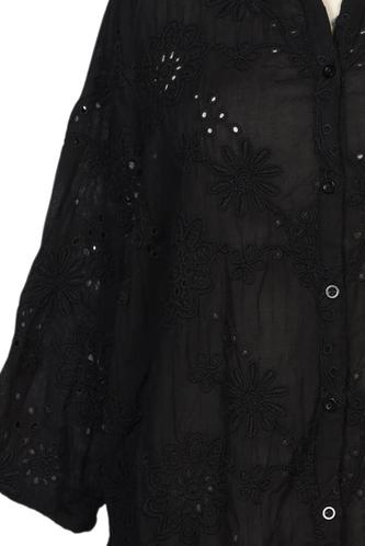 | Détails | Découpes, Dentelles, Broderie anglaise, Manches trois-quarts, Encolure en V, Patte de boutonnage avant |