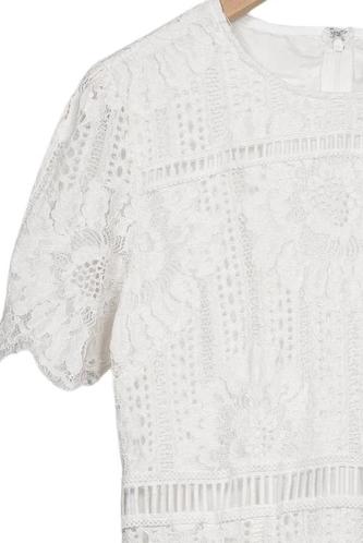 | Détails | Dentelles, Manches courtes, Col rond, Fermeture éclair/boutons arrière, Fleuri |