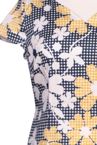 | Détails | Manches courtes, Encolure en V, Fermeture éclair/boutons arrière, Fleuri |