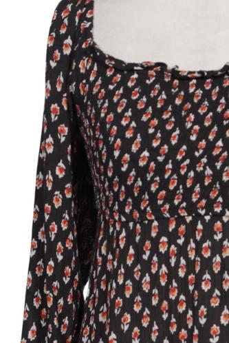 | Détails | volants, Manches longues, Encolure en V, Fleuri |