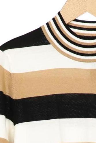 | Détails | Grosse maille, Manches courtes, Col roulé, Rayures |