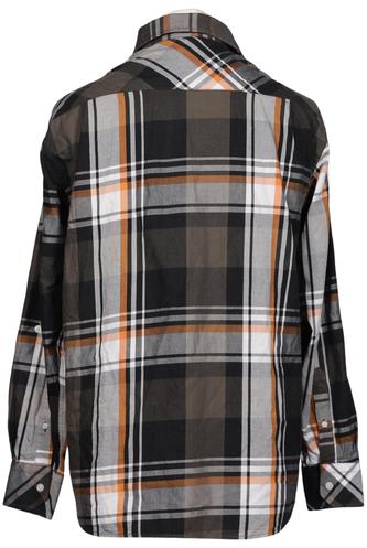 | Détails | Flanelle, Manches longues, Patte de boutonnage avant, Manchettes à revers, Carreaux |