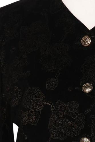 | Détails | Velours, Manches longues, Encolure en V, Patte de boutonnage avant, Fleuri |
