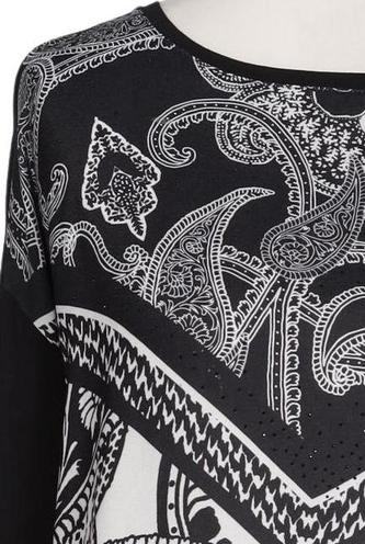 | Détails | Jersey, Manches trois-quarts, Col rond, Sans fermeture, Paisley |