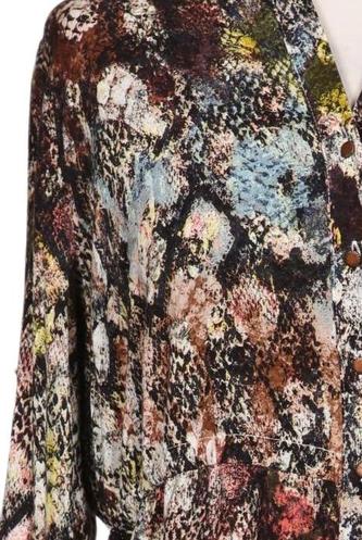 | Détails | Satin, Manches trois-quarts, Patte de boutonnage avant, Imprimé à motifs |