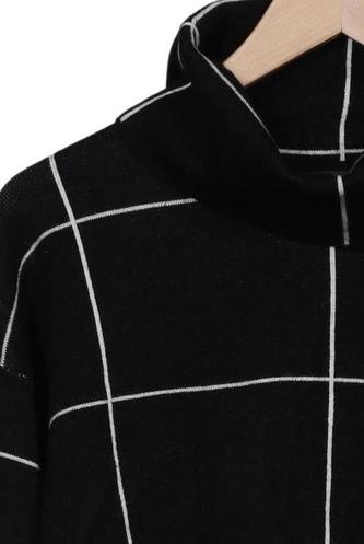 | Détails | Grosse maille, Manches longues, Col roulé, Carreaux |