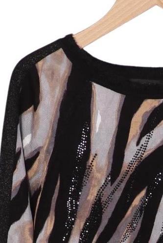 | Détails | Strass, Grosse maille, Manches longues, Col rond, Zèbre |