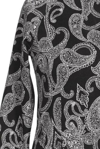 | Détails | Grosse maille, Manches trois-quarts, Col rond, Fermeture éclair/boutons arrière, Paisley |