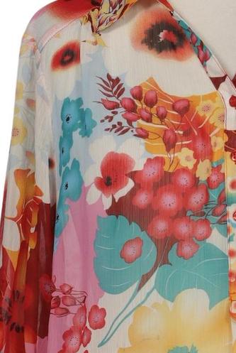 | Détails | Chiffon, Manches trois-quarts, Patte de boutonnage avant, Fleuri |