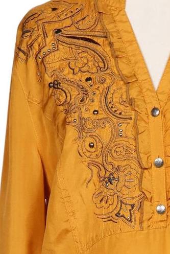 | Détails | Satin, Broderie, Manches longues, Patte de boutonnage, Encolure en V, Fleuri |