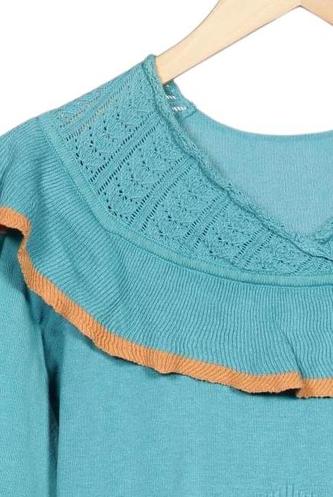 | Détails | volants, Grosse maille, Manches longues, Encolure en V, Uni |