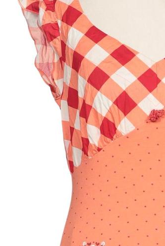 | Détails | volants, Manches courtes, Encolure en V, Carreaux, À pois |