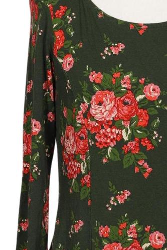 | Détails | Jersey, Manches trois-quarts, Col rond, Fleuri |