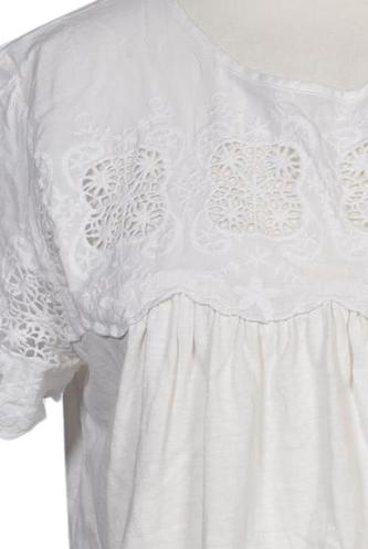 | Détails | Jersey, Dentelles, Broderie anglaise, Manches courtes, Col rond, Sans fermeture, Fleuri |