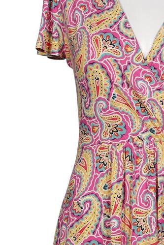 | Détails | Jersey, Manches courtes, Ceinture, Cache-cœur, Encolure en V, Paisley |