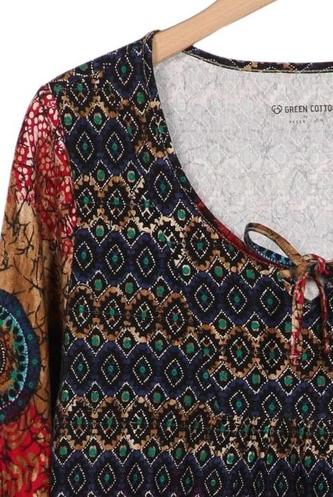 | Détails | Jersey, Manches trois-quarts, Encolure en V, Ethnique |