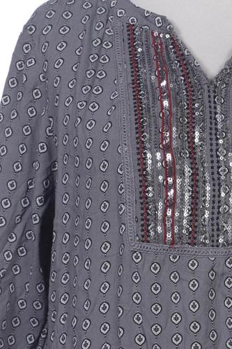 | Détails | Jersey, Broderie, Manches trois-quarts, Encolure en V, Sans fermeture, À pois |