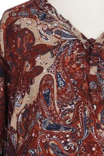 | Détails | Manches longues, Encolure en V, Sans fermeture, Paisley |