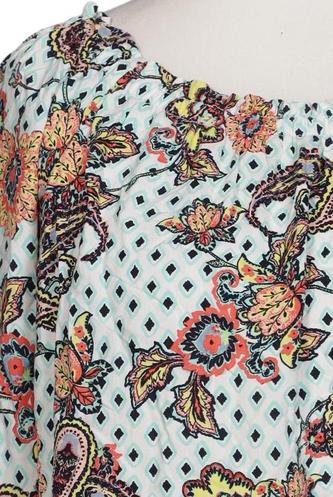 | Détails | Chiffon, Manches trois-quarts, Col rond, Sans fermeture, Paisley, À pois |