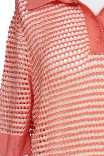 | Détails | Grosse maille, Manches courtes, Encolure en V, Rayures |