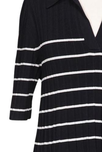 | Détails | Grosse maille, Manches courtes, Encolure en V, Rayures |