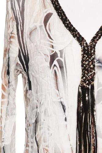 | Détails | Franges, Jersey, Métallique, Manches trois-quarts, Encolure en V, Sans fermeture, Imprimé à motifs |