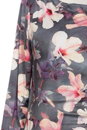 | Détails | Jersey, Manches trois-quarts, Col rond, Fleuri |
