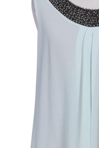 | Détails | Perles, Chiffon, Plissé, Sans manches, Col rond, Uni |