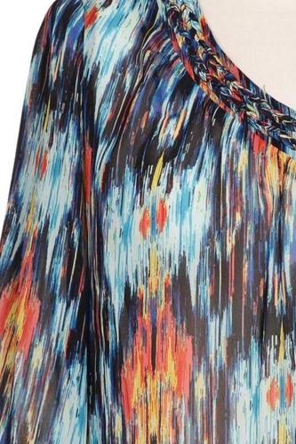 | Détails | Chiffon, Manches trois-quarts, Encolure en V, Sans fermeture, Imprimé à motifs |