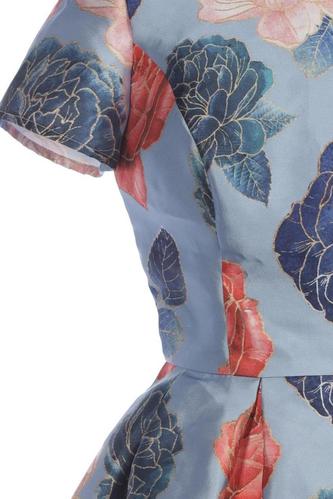 | Détails | Satin, Plissé, Manches courtes, Col rond, Fermeture éclair/boutons arrière, Fleuri |