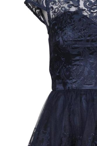 | Détails | Tulle, Manches courtes, Col rond, Fermeture éclair/boutons arrière, Fleuri |