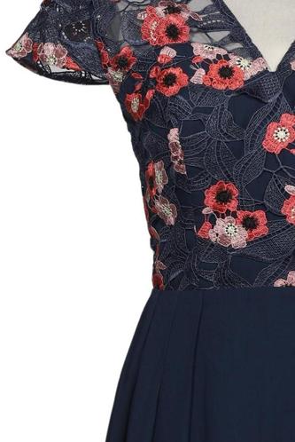 | Détails | Dentelles, Manches courtes, Encolure en V, Fermeture éclair/boutons arrière, Fleuri |