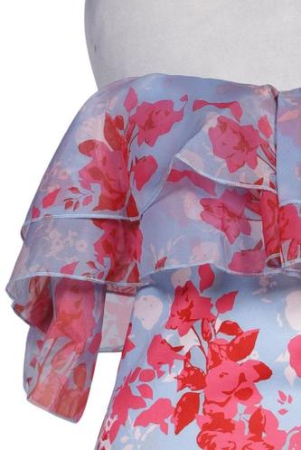 | Détails | Satin, volants, Manches courtes, Encolure en V, Fermeture éclair/boutons arrière, Fleuri |