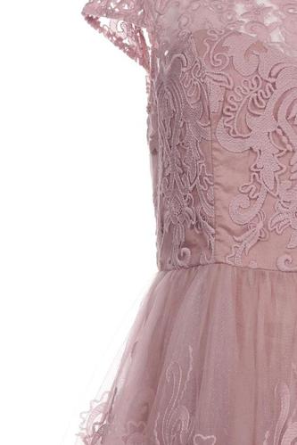 | Détails | Tulle, Manches courtes, Col rond, Fermeture éclair/boutons arrière, Fleuri |