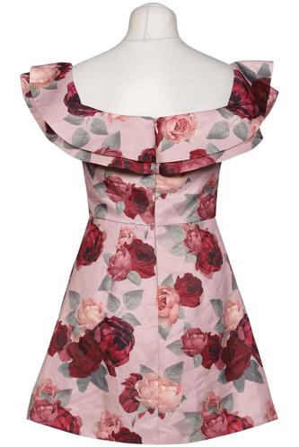 | Détails | Satin, volants, Manches courtes, Encolure en V, Fermeture éclair/boutons arrière, Fleuri |
