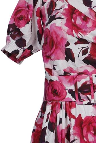| Détails | Manches courtes, Ceinture, Encolure en V, Fermeture éclair/boutons arrière, Fleuri |