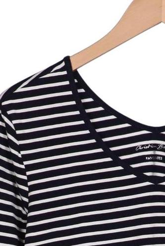 | Détails | Jersey, Manches trois-quarts, Encolure en V, Rayures |