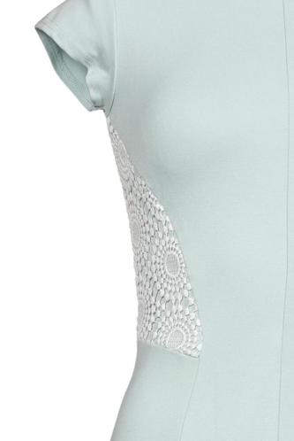 | Détails | Jersey, Découpes, Dentelles, Manches courtes, Col rond, Fermeture éclair/boutons arrière, Uni |