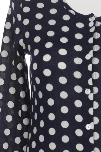 | Détails | Grosse maille, Manches longues, Col rond, Patte de boutonnage avant, À pois |