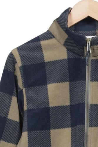 | Détails | Polaire, Col rond, Fermeture éclair avant, Carreaux |