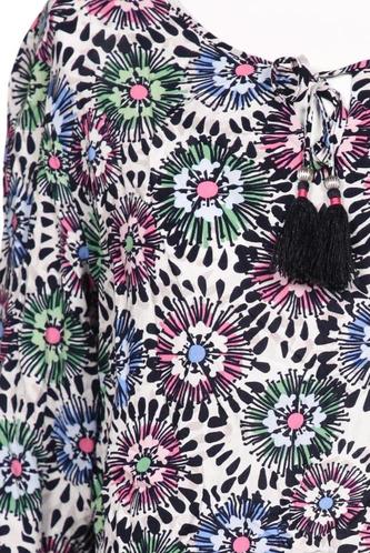 | Détails | Franges, Jersey, Manches trois-quarts, Col rond, Sans fermeture, Fleuri |