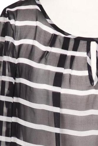 | Détails | Chiffon, Manches trois-quarts, Col rond, Sans fermeture, Rayures |