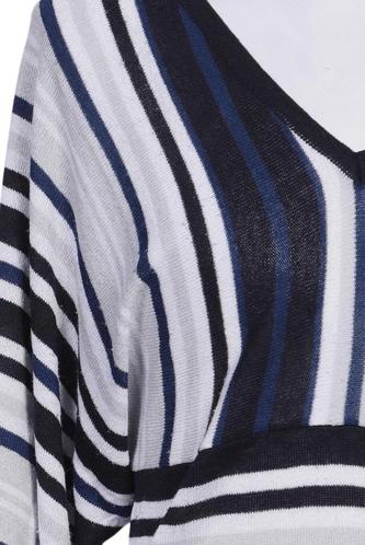 | Détails | Grosse maille, Manches trois-quarts, Encolure en V, Rayures |